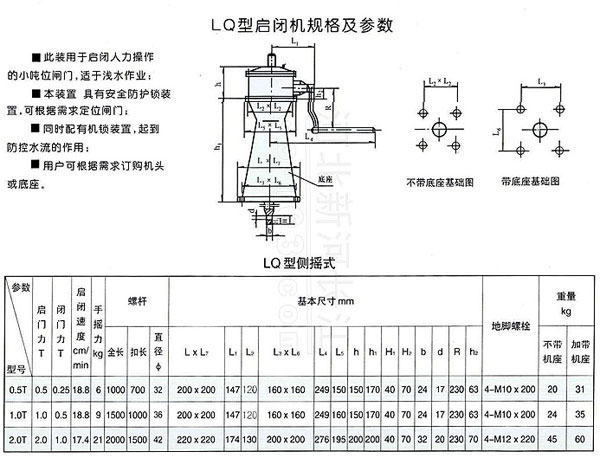 LQ型啟閉機(jī)規(guī)格及參數(shù)
