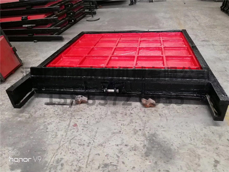 1、鑄鐵鑲銅方閘門由門框、閘板、導(dǎo)軌、密封條、傳動(dòng)螺桿、吊塊螺母/吊耳和可調(diào)整密封機(jī)構(gòu)等部件組成,其中門框和閘板均由*灰口鑄鐵或球墨鑄鐵制成,導(dǎo)軌左右對(duì)稱布置且用不銹鋼螺栓定位銷與門框二側(cè)端部連接(對(duì)中小口徑的閘門,其導(dǎo)軌可與門框澆注成一體),導(dǎo)軌長(zhǎng)度一般為閘門全開啟高度的1/2~1/3,因而整體結(jié)構(gòu)強(qiáng)度高、剛性高、耐磨、耐腐蝕性好、承壓能力大。