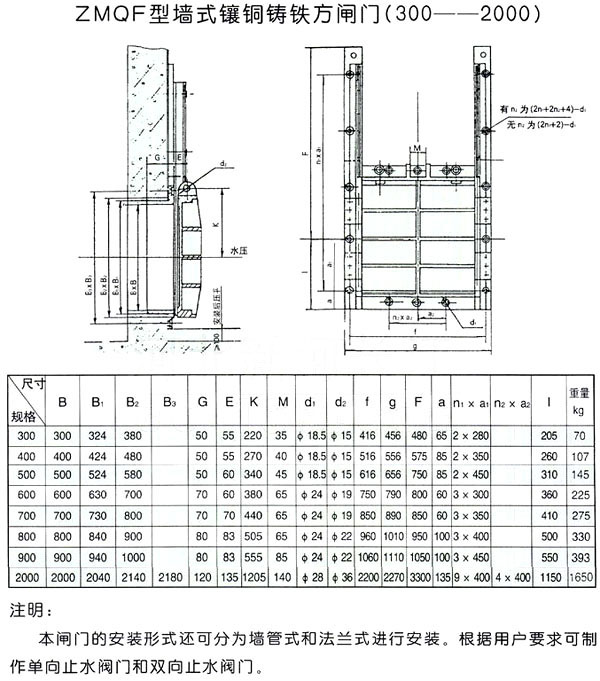 ZMQF型墻式鑲銅鑄鐵方閘門